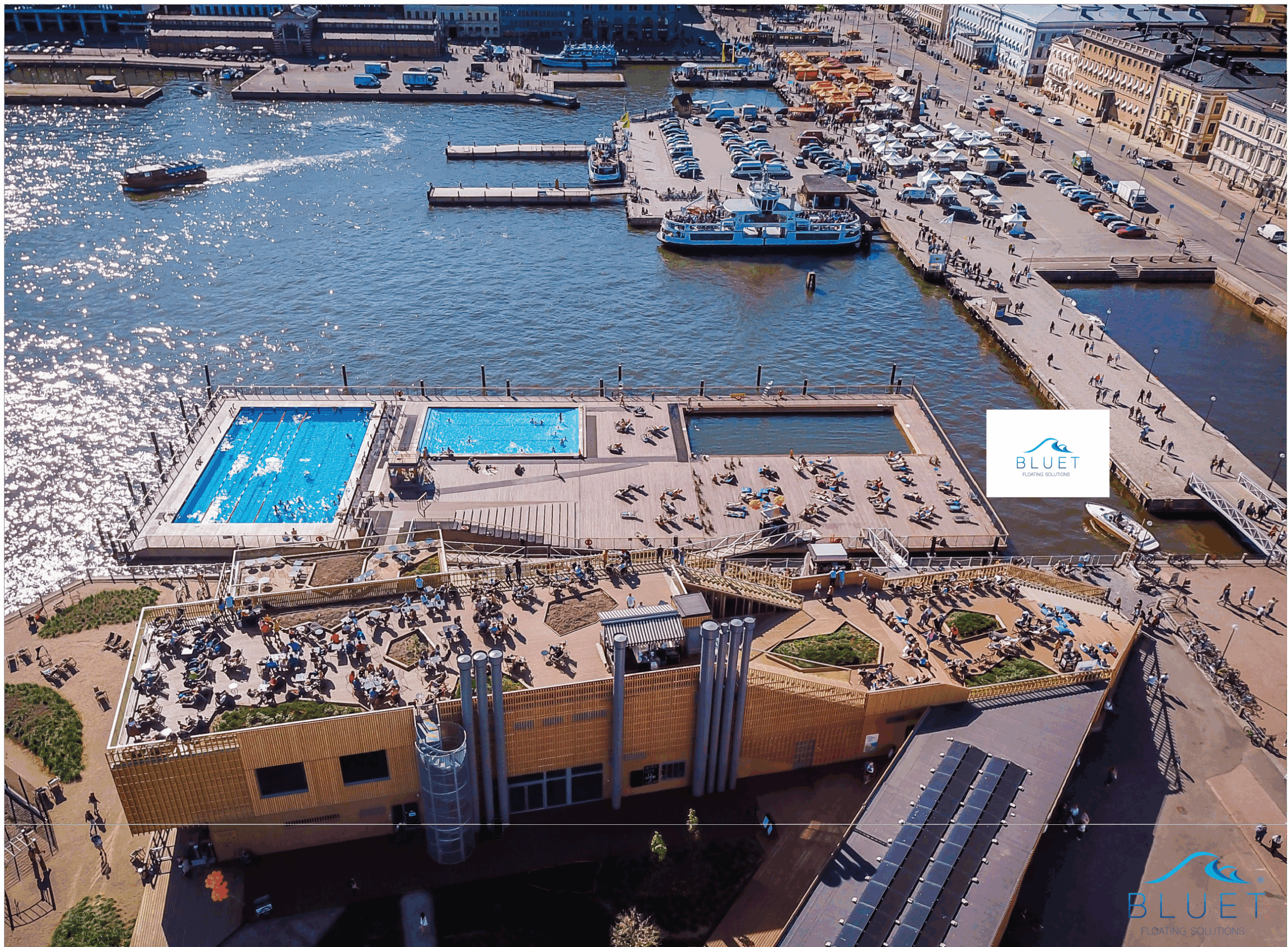 Bluet is wereldwijd toonaangevend op het gebied van innovatieve drijvende oplossingen. Het Finse bedrijf heeft jarenlange ervaring in de ontwikkeling en realisatie van drijvende zwembaden, platforms en infrastructuren voor zowel recreatieve als industriële toepassingen. Bluet staat bekend om haar hoogwaardige, duurzame en modulaire oplossingen die volledig op maat worden ontworpen.